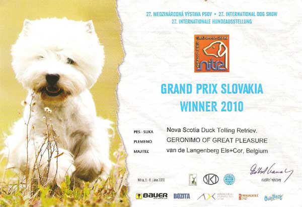 Geronimo werd "Grand Prix Winner" in Slovakije op de show op 5 & 6 juni 2010