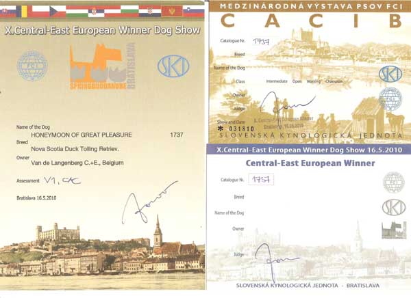 06/11/2005 | Cumin (Chantta of Great Pleasure) werd op de Clubshow van de Slovakische Retriever Club Best in Show !!!! |